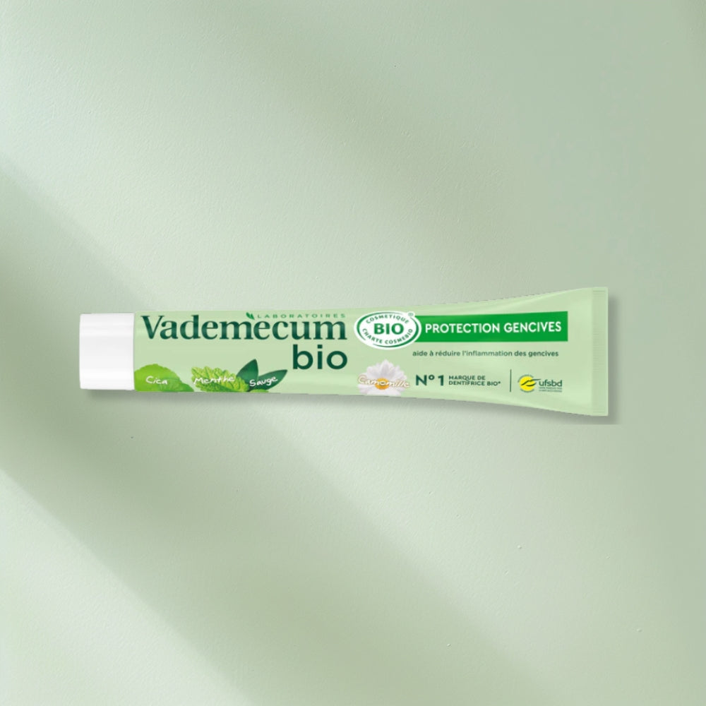 Les dentifrices bio Vademecum contiennent 99 % d'ingrédients d'origine naturelle et jusqu'à 24 % d'ingrédients issus de l'agriculture biologique.